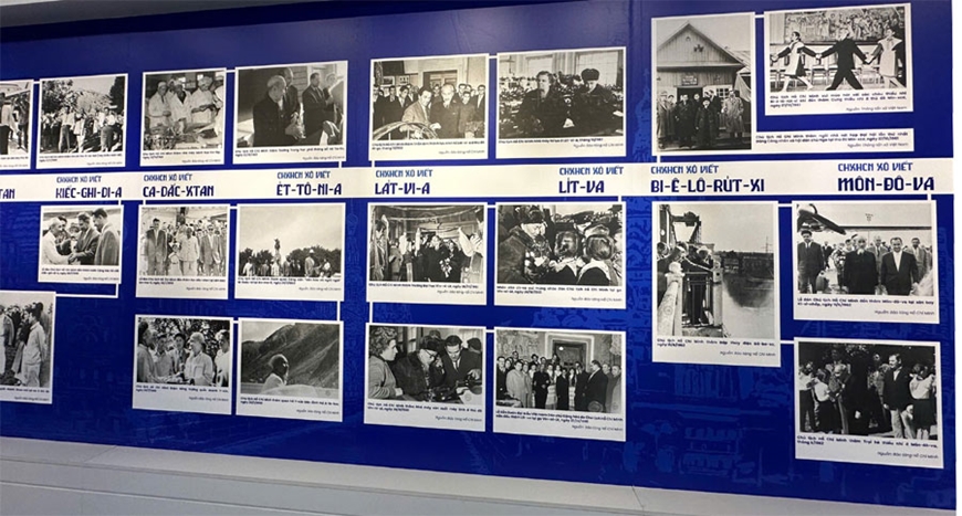 Với gần 300 ảnh, tài liệu, hiện vật tiêu biểu được lựa chọn kỹ lưỡng, trong đó có những tài liệu, hiện vật quý hiếm, mới được sưu tầm, trưng bày chuyên đề giới thiệu tới công chúng hành trình theo dấu chân cách mạng của Nguyễn Ái Quốc - Hồ Chí Minh ở nước Nga trong những năm 1923 - 1924, 1927, 1934 - 1938 khi Người bôn ba tìm đường cứu nước, cũng như hành trình theo dấu chân hữu nghị mà Chủ tịch Hồ Chí Minh, trên cương vị là Chủ tịch nước Việt Nam Dân chủ Cộng hòa (nay là Cộng hòa xã hội chủ nghĩa Việt Nam) đã để lại trên khắp Liên Xô rộng lớn.