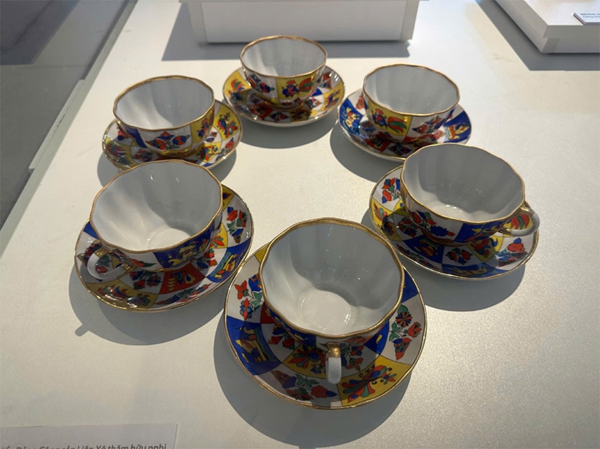 | Bộ chén uống trà do Đoàn đại biểu Đảng Cộng sản Liên Xô thăm hữu nghị Việt Nam tặng Chủ tịch Hồ Chí Minh ngày 12-1-1966. |