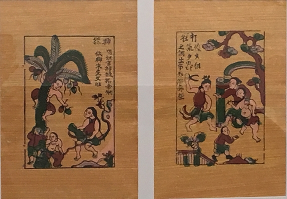 Hai bức tranh dân gian Đông Hồ "Hứng dừa" và "Đánh ghen". |
