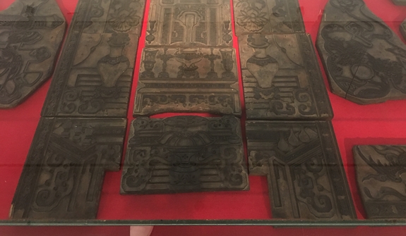Bộ ván khắc tranh thờ của nghệ nhân Nguyễn Đăng Chế trưng bày tại triển lãm. |