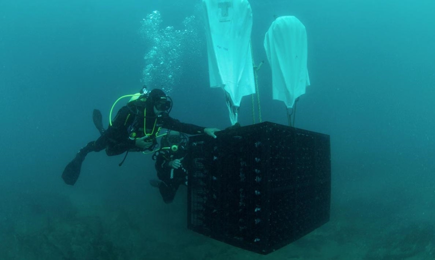 | Hầm rượu Crusoe Treasure, một trong những hầm rượu dưới nước lớn của Tây Ban Nha, nằm ngoài khơi Plentzia. Điều kiện dưới biển mô phỏng các yếu tố quan trọng góp phần tạo nên hương vị của rượu vang. Ảnh: Bodega Crusoe Treasure |