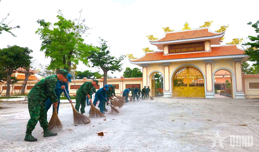 Ngày 20-12, cán bộ, chiến sĩ Đồn Biên phòng Long Khốt (Bộ đội Biên phòng tỉnh Tây Ninh) phối hợp với Đoàn Thanh niên và lực lượng công an xã Tuyên Bình (tỉnh Tây Ninh) tổ chức hoạt động củng cố cảnh quan, khuôn viên Khu Di tích lịch sử quốc gia khu vực Đồn Long Khốt.