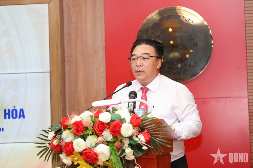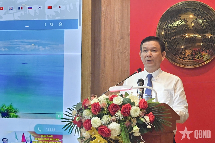 | Nhà báo Phạm Đức Thái, Vụ trưởng, Giám đốc Trung tâm Thông tin và nghiên cứu khoa học, Nhà xuất bản Chính trị Quốc gia Sự thật trình bày tham luận truyền thông về du lịch Khánh Hòa. |