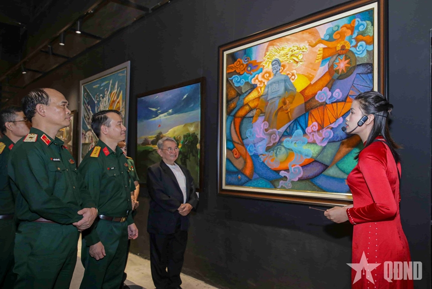 | Đại biểu tham quan triển lãm mỹ thuật toàn quốc đề tài Lực lượng vũ trang - Chiến tranh cách mạng (giai đoạn 2019 - 2024), tháng 11-2024. Ảnh: NGUYỄN THUẬN |