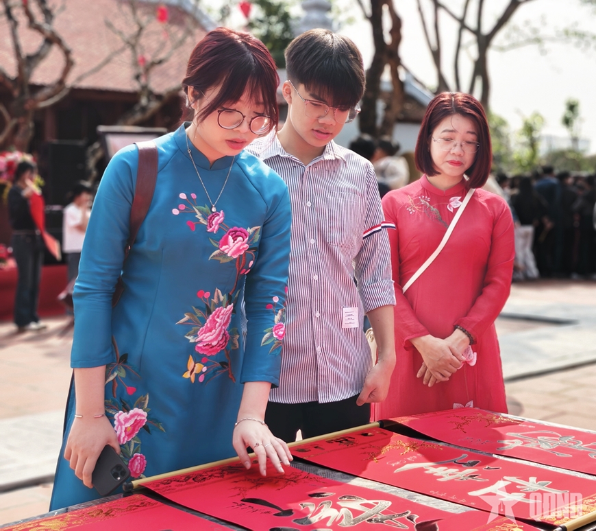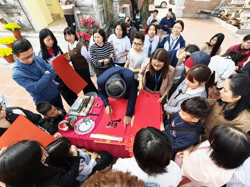 Ngay trong buổi sáng khai mạc, hàng nghìn người dân ở khắp các địa phương của tỉnh Hưng Yên tìm về Văn miếu Xích Đằng xin chữ, tham quan triển lãm.