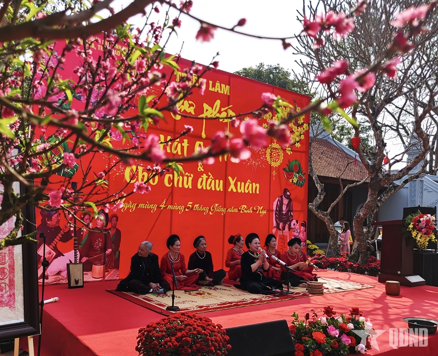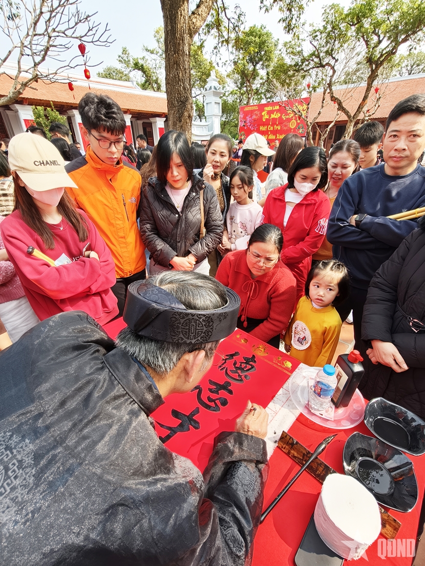 | Cùng với xin chữ, tham quan triển lãm, người dân còn được nghe hát ca trù. |