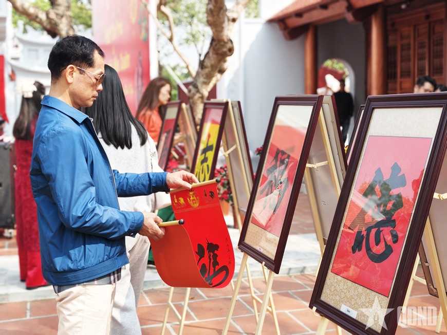 | Không gian triển lãm thư pháp cũng thu hút đông người tham quan. |