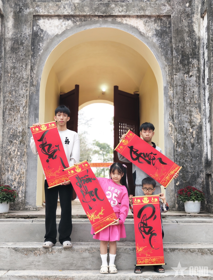 | 4 anh em cùng khoe những chữ vừa xin được. |