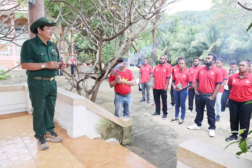 Bạn Trần Thị Lệ Vân (sinh viên Khoa Kinh tế và Quản trị, Trường Đại học Thái Bình Dương) xúc động chia sẻ: “Nhìn các bạn sinh viên Vanuatu hào hứng khám phá lịch sử quê hương mình, em thấy vô cùng tự hào. Trước đây, em chỉ biết về chiến khu Đồng Bò qua những trang sách. Hôm nay, được trực tiếp chạm tay vào vách đá, tham gia giải mật thư và học cách sơ cấp cứu ngay tại nơi các chiến sĩ quân y từng làm việc, em thấy lịch sử trở nên gần gũi và sống động hơn bao giờ hết. Đặc biệt, việc được đồng hành cùng các bạn sinh viên Vanuatu trong hoạt động tặng quà và giao lưu đã giúp em tự hào hơn khi được giới thiệu về hào khí dân tộc mình với bạn bè quốc tế.”