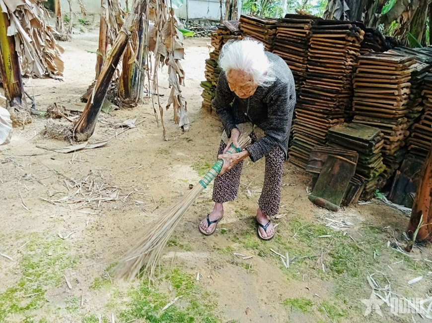 | Bà Hai thường quét sân, lau nhà sạch sẽ. |