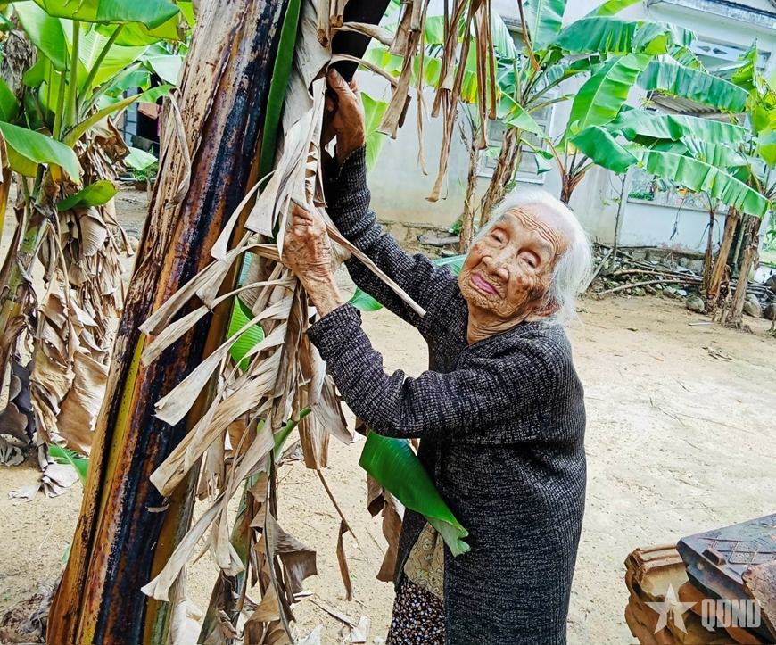 Lưng cụ đã còng, người nhỏ xíu, nhưng đôi mắt vẫn sáng lên nét tinh anh trên khuôn mặt hiền từ dày đặc vết thời gian. Tiếp chúng tôi trong căn nhà cấp 4 nho nhỏ, nhưng ngăn nắp, gọn gàng và sạch sẽ. Nhìn căn nhà, không ai nghĩ một mình cụ già 105 tuổi mà sống và sắp xếp đồ đạc đâu vào đó như vậy.