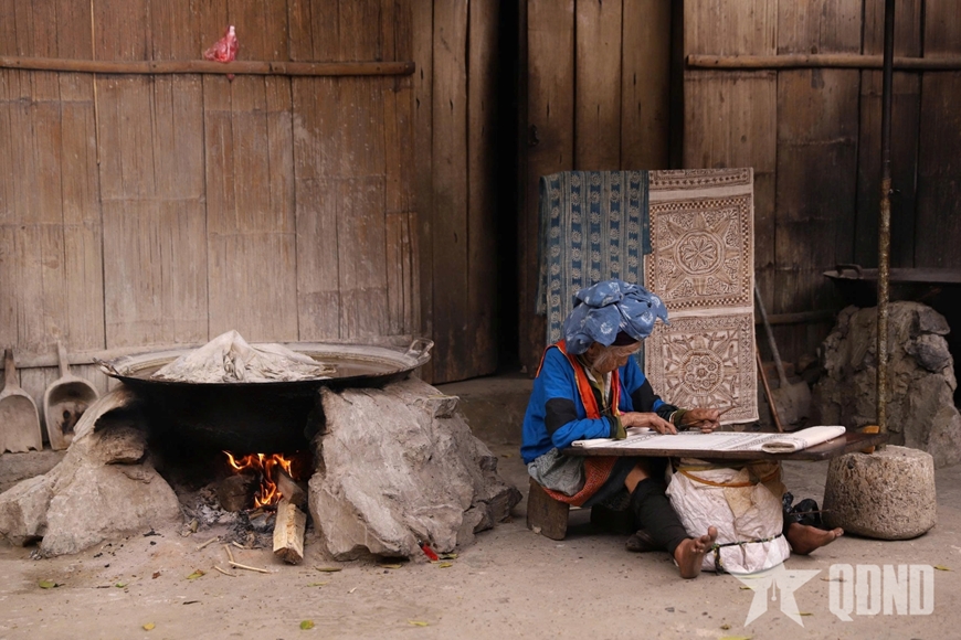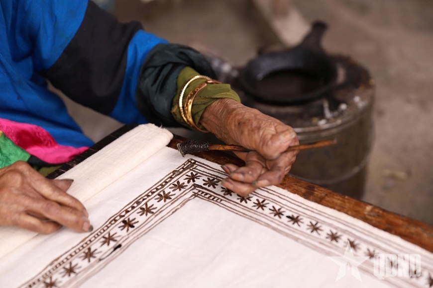 Tại một góc nhỏ của Hợp tác xã dệt lanh Lùng Tám, mùi sáp ong nồng đượm quện trong khói bếp tạo nên một không gian đậm đặc hơi thở vùng cao. Đó là thế giới riêng của bà Cẩu. Ở tuổi 97, bà vẫn miệt mài bên bếp lửa để giữ hồn của kỹ thuật vẽ sáp ong truyền thống. Bằng cây bút đồng và sáp ong nung chảy, đôi tay vốn không được lành lặn của bà tỉ mẩn tạc những hoa văn tinh xảo lên nền vải lanh, tạo nên những sắc chàm không bao giờ phai nhạt. Đôi bàn tay dị tật bẩm sinh-tưởng như là trở ngại lớn nhất của cuộc đời, lại trở thành “công cụ” gìn giữ và truyền trao những giá trị văn hóa bền bỉ qua thời gian.
