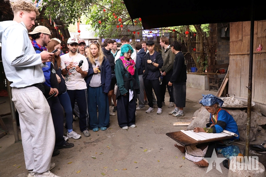| Du khách đến Lùng Tám đều ngạc nhiên và khâm phục sức làm việc của nghệ nhân Sùng Thị Cẩu. |