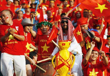 | Sắc đỏ của cổ động viên Việt Nam tràn ngập trên các khán đài sân vận động Quốc gia Lào. Ảnh: Internet |