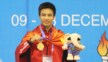 Tấm HC vàng thứ 6 của silat Việt Nam trong sáng nay thuộc về Vũ Thế Hoàng, ở hạng cân 80 kg của nam.