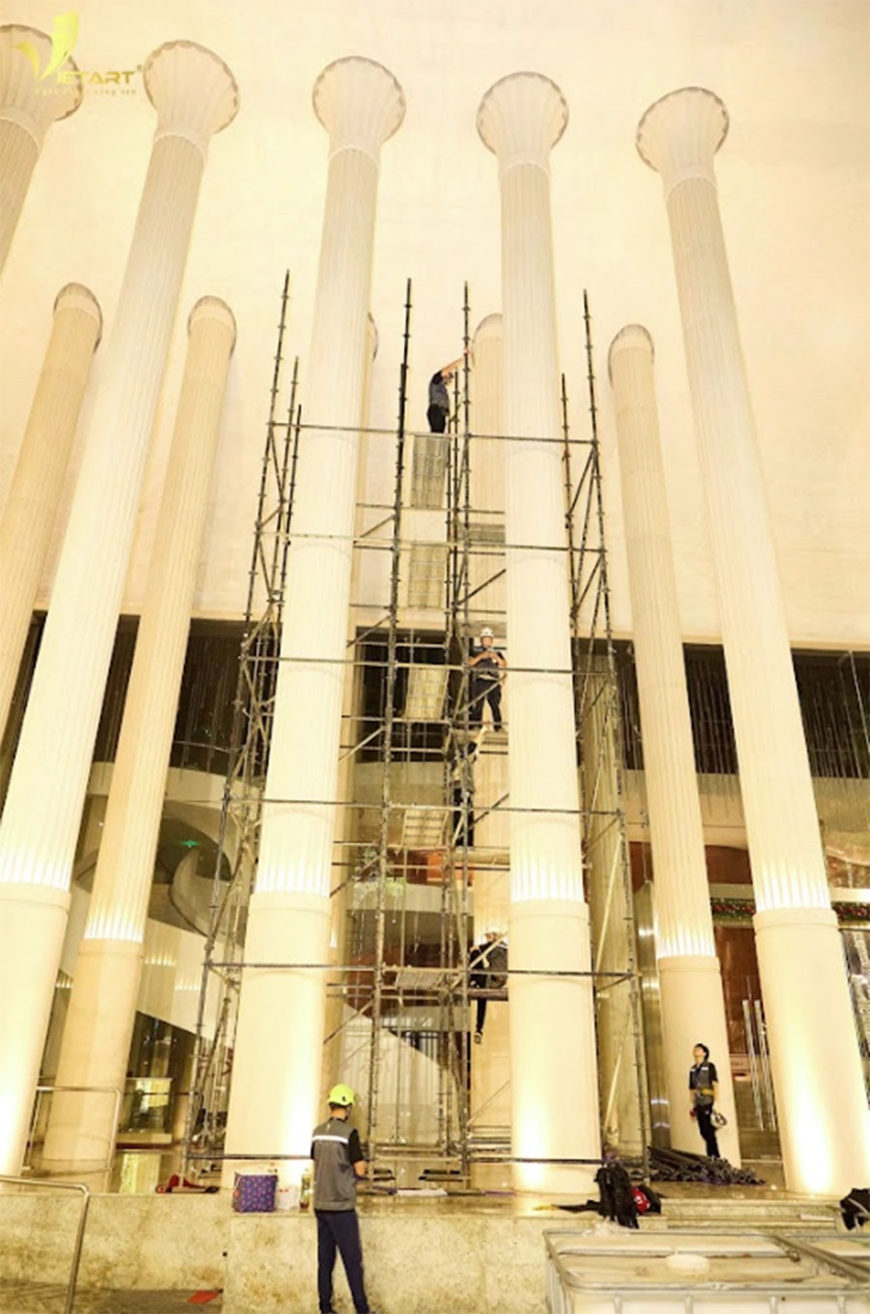 Đội ngũ kỹ thuật của VietArt đã trải qua nhiều vòng khảo sát và làm việc chuyên sâu với Nhà hát Hồ Gươm để khảo sát mặt bằng sân khấu, hệ thống treo, tải trọng, vị trí lắp đặt thiết bị và điều chỉnh các phương án kỹ thuật phù hợp với cấu trúc vở diễn.