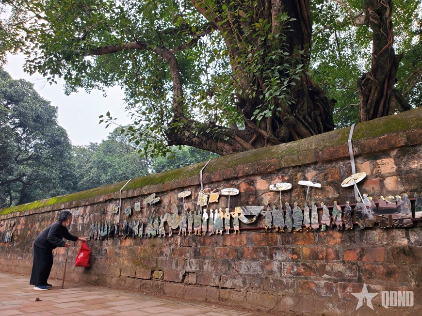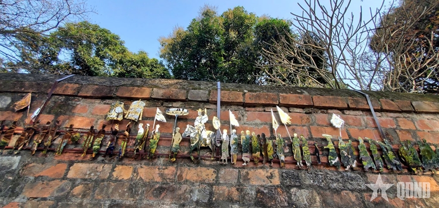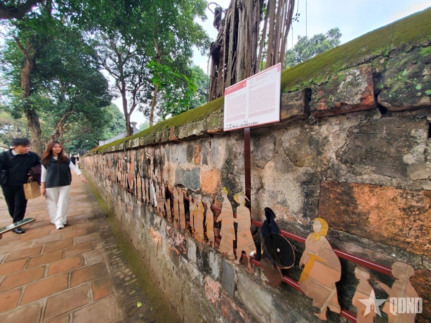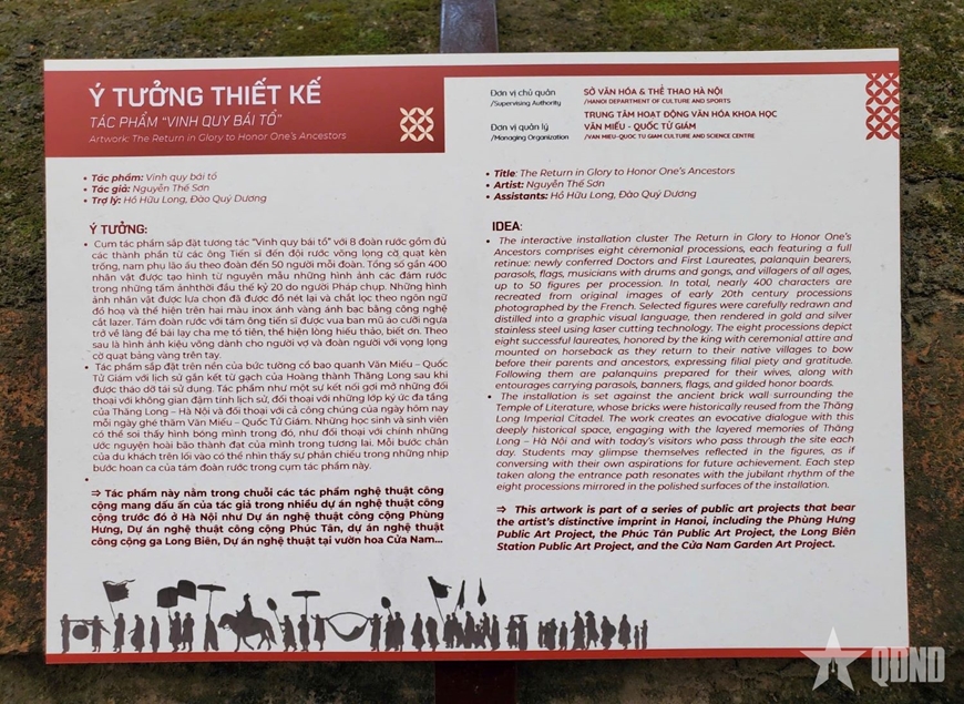 Được đặt trên nền tường gạch vồ cổ kính của Văn Miếu - Quốc Tử Giám - công trình gắn liền với truyền thống khoa bảng của dân tộc, tác phẩm “Vinh quy bái tổ” tạo nên một cuộc đối thoại đa chiều giữa quá khứ và hiện tại.
