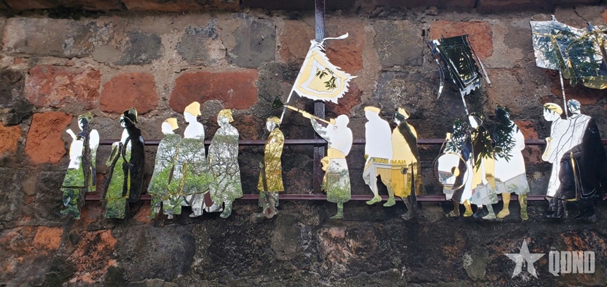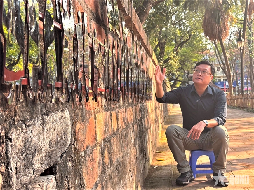 Hiệu ứng phản chiếu từ chất liệu inox cho phép người xem như “bước vào” tác phẩm, cảm nhận được mỗi chuyển động của bản thân hòa vào nhịp rước rộn ràng, khiến ký ức lịch sử không còn tĩnh tại mà trở nên sống động trong đời sống đương đại.
