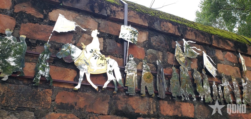 Tác phẩm “Vinh quy bái tổ” với chất liệu hiện đại được đặt trong không gian di sản.