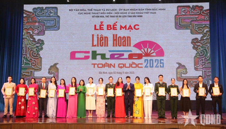 Lễ bế mạc và trao giải Liên hoan Chèo toàn quốc 2025 được Bộ Văn hóa, Thể thao và Du lịch tổ chức tối 2-11, tại Trung tâm Văn hóa-Triển lãm tỉnh Bắc Ninh. Đồng giải huy chương vàng vở diễn là vở chèo đề tài lịch sử “Thiên mệnh” của Nhà hát Chèo Bắc Ninh.
