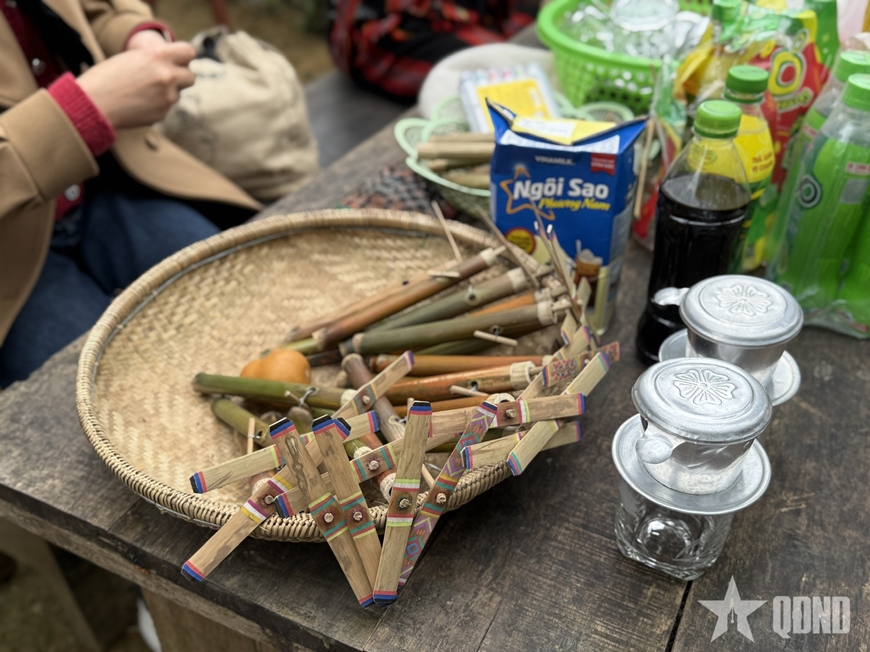 A Chương, dân tộc Xơ Đăng, đánh trống rộn ràng, hòa cùng nhịp xoang cuốn hút du khách nhập cuộc. Anh cho biết, bà con tại Làng đón Tết rất vui. "Hôm nay là ngày đông vui nhất từ đầu xuân tới giờ”, anh nói, ánh mắt ánh lên niềm tự hào.