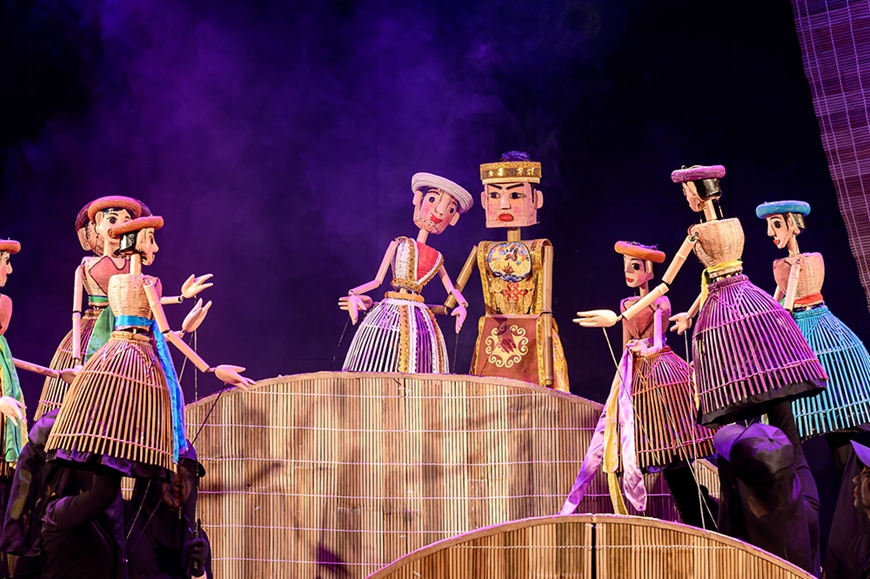 Xuất hiện như một “vị khách đặc biệt” trong khuôn khổ liên hoan là vở “Tấm Cám” của Nhà hát Múa rối Thăng Long. Cốt truyện tác phẩm đã thuộc ký ức của nhiều thế hệ khán giả, nay lại hồi sinh trong hình hài mới và bước ra đấu trường quốc tế. Vở diễn sử dụng nhất quán chất liệu tre làm trục thẩm mỹ chủ đạo. Tre hiện diện trong tạo hình con rối, trong phên nứa bối cảnh, trong khung cửi, quang gánh... khiến sân khấu mang tinh thần làng quê Bắc Bộ vừa mộc mạc vừa duyên dáng. Bên cạnh đó, điểm mới của vở diễn còn nằm ở việc sử dụng kịch bản chèo làm lời tự sự. Các nghệ sĩ vừa điều khiển rối, vừa thoại, vừa hát, đòi hỏi kỹ năng tổng hợp cao. Nhờ vậy, vở diễn không chỉ kể lại truyện cổ mà còn trở thành cuộc gặp gỡ đẹp đẽ giữa múa rối cạn và sân khấu chèo, đưa khán giả vào một thế giới vừa quen vừa lạ, vừa dân gian vừa hiện đại.