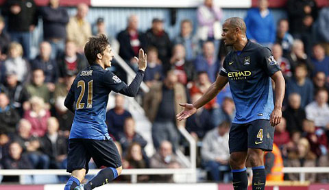 Tiền vệ David Silva ghi bàn thắng rút ngắn tỷ số xuống 2-1 cho Man City. Ảnh: Getty Images.