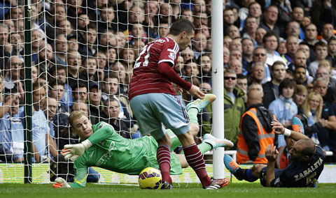 Tấn công nhiều, đặc biệt là không tận dụng được các cơ hội, Man City đã phải trả giá vì sự lỏng lẻo của hàng phòng ngự. Phút 75, từ quả tạt bên cánh trái, Diafra Sakho bật cao đánh đầu hạ thủ môn Joe Hart, nâng tỷ số lên 2-0 cho West Ham.