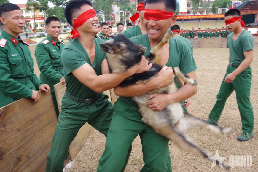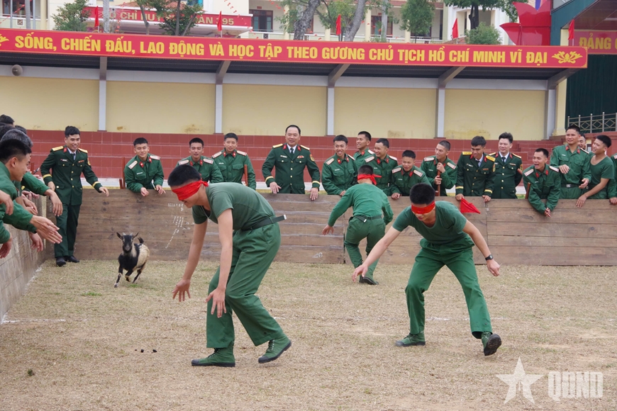 Trong đó, trò chơi “Bịt mắt bắt dê” thu hút đông đảo cán bộ, chiến sĩ các đơn vị thuộc Sư đoàn 395 tham gia, với nhiều màn rượt đuổi, bắt dê kịch tính. Trò chơi vừa tạo tiếng cười ngày xuân, vừa là dịp để cán bộ, chiến sĩ tăng cường thêm sự gắn bó, đoàn kết trong đơn vị.