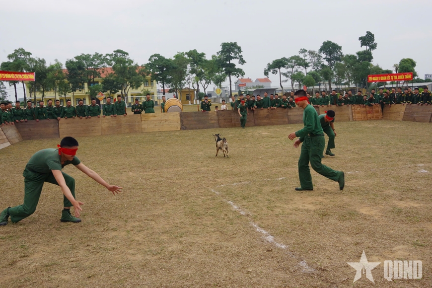 | Trò chơi thu hút sự hứng thú, cổ vũ nhiệt tình của cán bộ, chiến sĩ. Nhiều khi chú dê bị dồn vào góc tường nhưng vẫn biết cách thoát ra, tránh bị bắt. |