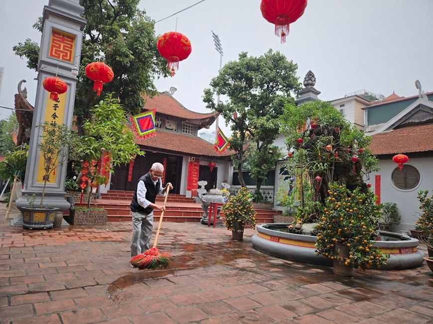 Từ những ngày đầu tháng Chạp, Ban Quản lý Di tích Bích Câu Đạo quán và người dân làng An Trạch đã rộn ràng chuẩn bị đón Tết Nguyên Đán 2026 với rất nhiều công việc: “Cũng như mọi năm, chúng tôi thực hiện lau chùi, bao sái, sắm sửa lễ vật đầy đủ, bày biện các ban thờ. Bên cạnh đó, không gian bên ngoài cũng được chúng tôi đặc biệt quan tâm. Phần trang trí bên ngoài mỗi năm lại phát triển thêm, bài trí phù hợp và hài hòa với cảnh quan chung cũng như yếu tố truyền thống của Tết miền Bắc”, chia sẻ của ông Cao Mạnh Hùng - Phó Tiểu Ban Quản lý Di tích Bích Câu Đạo quán.