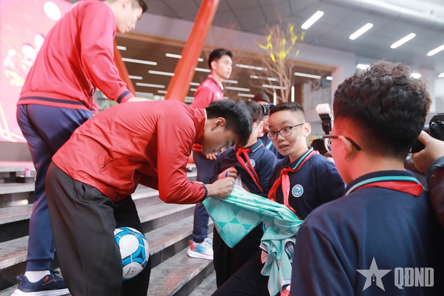 | Cầu thủ U23 Việt Nam ký tặng học sinh. |