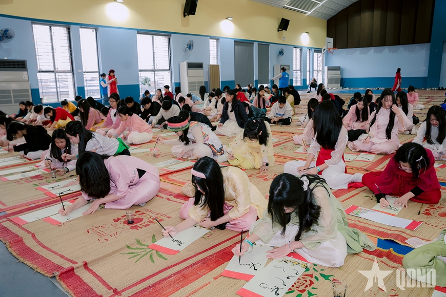 Bên cạnh đó, nhà trường tổ chức Hội thi viết Thư pháp là không gian để học sinh thể hiện sự trân trọng đối với con chữ và đạo học. Qua từng nét bút, học sinh được rèn luyện sự cẩn trọng, kiên nhẫn, đồng thời bồi đắp tình yêu đối với những giá trị văn hóa truyền thống của dân tộc trong không khí ngày xuân.