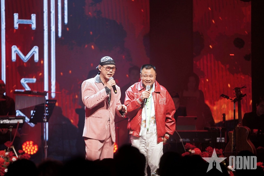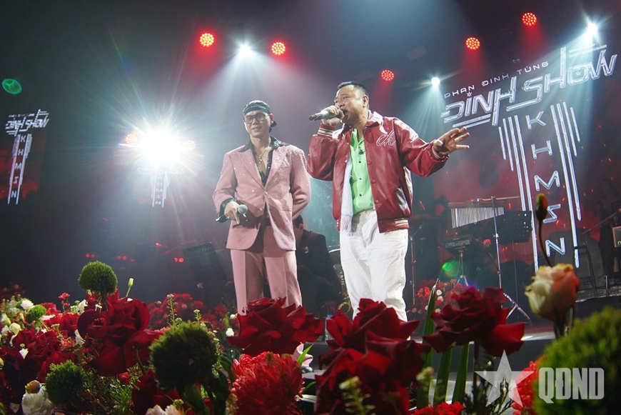 NSND Tự Long và ca sĩ Phan Đinh Tùng có những màn tung hứng tấu hài tạo không khí hào hứng trong đêm nhạc kỷ niệm của nam ca sĩ.