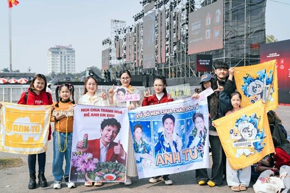 Người hâm mộ hào hứng trước giờ diễn ra đêm nhạc Y-FEST Thanh Hóa. |