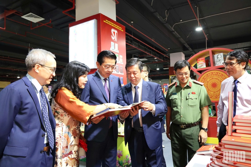 | Đại biểu tham quan trưng bày sách tại Triển lãm 80 năm thành tựu đất nước, tháng 8-2025. Ảnh: NGUYỄN CHẮT |