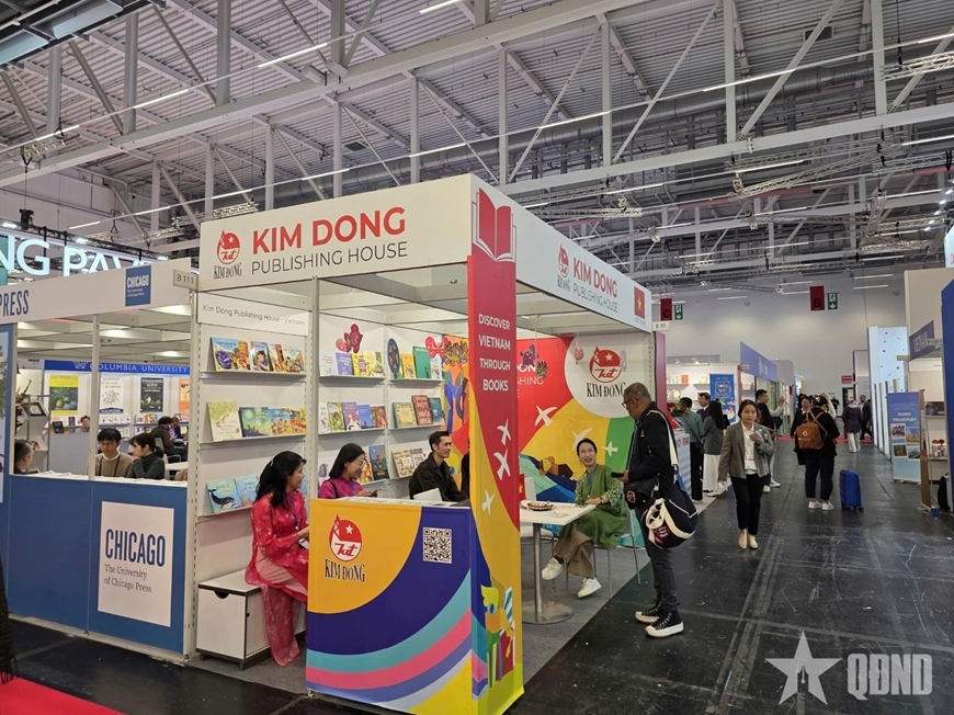 | Gian hàng Nhà xuất bản Kim Đồng tại Hội sách Quốc tế Frankfurt. |