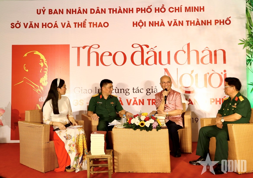 Phát biểu tại buổi giao lưu, Nhà văn Trịnh Bích Ngân, Chủ tịch Hội Nhà văn TP Hồ Chí Minh nhấn mạnh: Truyện ký “Theo dấu chân Người” vinh dự đoạt giải Nhất lĩnh vực văn học trong Cuộc vận động sáng tác “TP Hồ Chí Minh - 50 năm tự hào bản anh hùng ca”, cho thấy tác phẩm không chỉ kể lại hành trình viết sách, mà còn giúp độc giả hiểu thêm về những tư liệu quý giá được tác giả sưu tầm suốt nhiều năm, mang đến cho bạn đọc góc nhìn sâu sắc về cuộc đời, sự nghiệp và nhân cách vĩ đại của Chủ tịch Hồ Chí Minh.