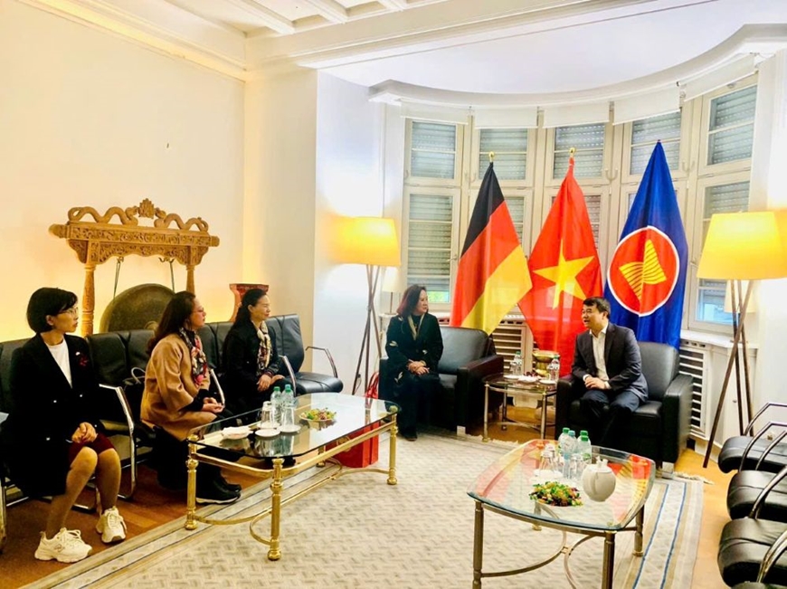 Đoàn công tác thăm và làm việc với Lãnh sự quán Việt Nam tại Frankfurt. Ảnh: Sở VH&TT Hà Nội |