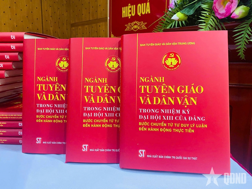 | Cuốn sách “Ngành Tuyên giáo và Dân vận trong nhiệm kỳ Đại hội XIII của Đảng - Bước chuyển từ tư duy lý luận đến hành động thực tiễn”. |