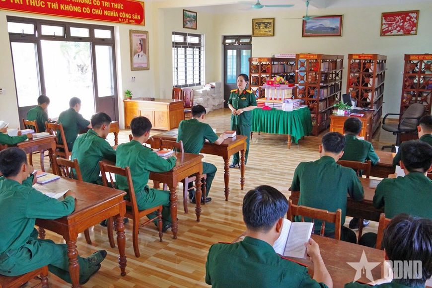 | Cán bộ, chiến sĩ Sư đoàn 320 đọc sách ở Thư viện Sư đoàn 320. |