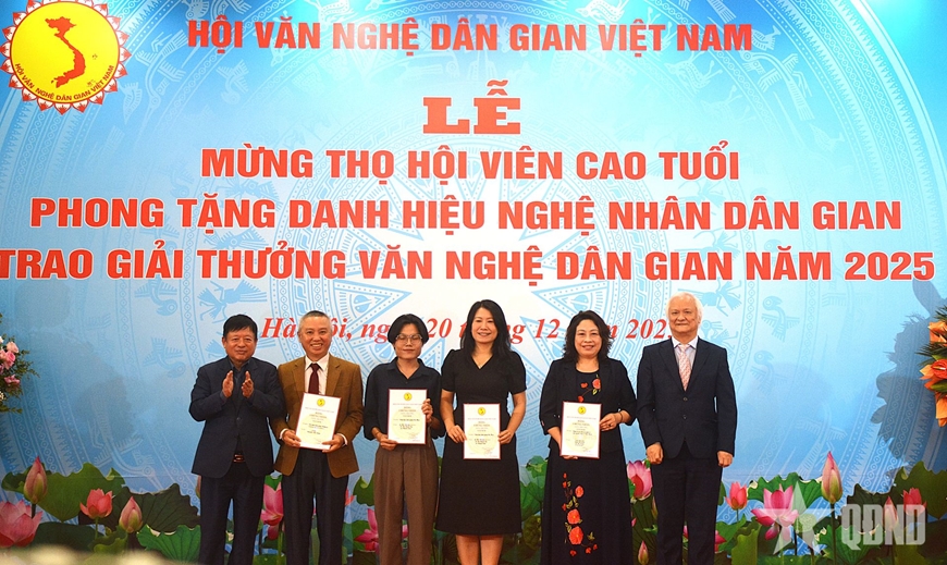 Ngày 20-12, tại Hà Nội, Hội Văn nghệ dân gian Việt Nam tổ chức Lễ mừng thọ hội viên cao tuổi, phong tặng danh hiệu nghệ nhân dân gian và trao Giải thưởng văn nghệ dân gian năm 2025.