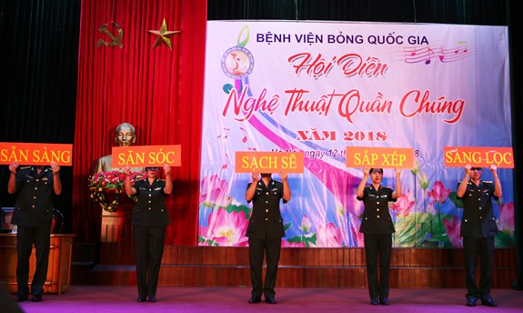 Phát biểu khai mạc hội diễn, Đại tá Trương Ngọc Dương, Bí thư Đảng ủy, Chính ủy Bệnh viện Bỏng Quốc gia cho biết, hội diễn là một trong những hoạt động hướng tới kỷ niệm 70 năm Ngày truyền thống Học viện Quân y; 54 năm Ngày truyền thống Bệnh viện Bỏng Quốc gia. Hội diễn nhằm tạo không khí vui tươi, đoàn kết, nâng cao đời sống văn hóa cho cán bộ, chiến sĩ, công nhân viên trong bệnh viện. Báo QĐND Online trân trọng gửi đến độc giả một số hình ảnh tại Hội diễn nghệ thuật quần chúng do Bệnh viện Bỏng Quốc gia tổ chức.