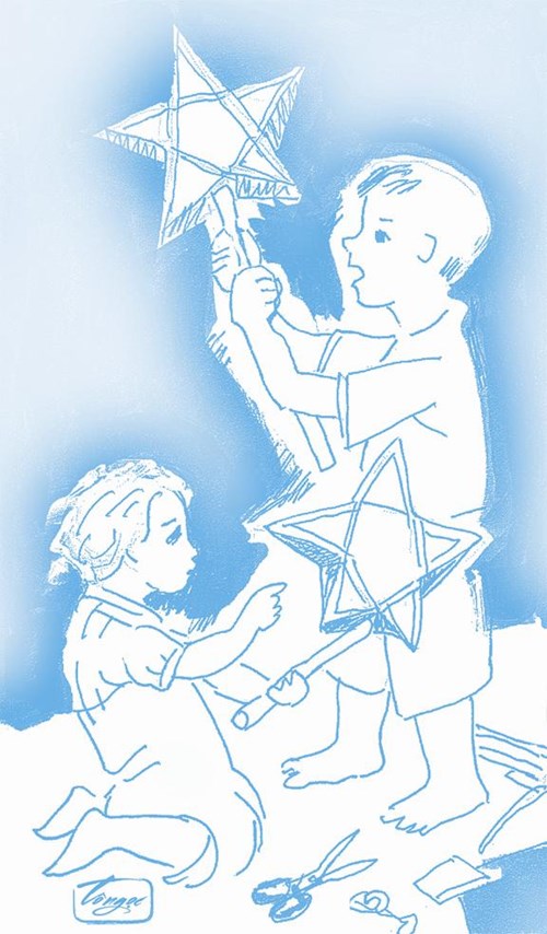 Sáng hôm sau, nhà chị Mai ríu rít với nan tre, giấy màu, hồ dán, nến “còi”... Anh cả Việt Tuấn thì phụ trách phần đan rồi buộc, gia cố các đầu mối kết nối nan tre của đèn ông sao. Mấy cái dây sắt nhỏ xíu mà chị Mai mua ở hàng điện nước cứ loằng ngoằng trên tay cậu, khiến cậu bối rối và làm em út Hương Trang cười tít mắt, chê anh vụng. Em càng chê thì Việt Tuấn lại càng bặm môi quấn dây đến độ dây đứt luôn. Thế là hai anh em toe toét. Vừa mới nín để làm tiếp thì bé Trang vô tình quệt cả vệt hồ dán lên má khi vuốt tóc lại khiến hai anh em lăn ra cười…