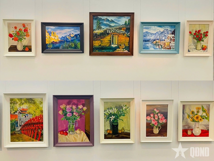 Công chúng đến triển lãm cũng bắt gặp khung cảnh Hà Nội thân thương và những miền đất Tây Bắc đầy nắng gió qua tranh của họa sĩ Nguyễn Bích Hồng. Với chất liệu sơn dầu và bút pháp phóng khoáng, chị tái hiện những con phố cổ, cây cầu cũ, những mái nhà nhuốm màu thời gian.