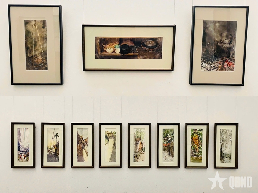 | Các tác phẩm màu nước của họa sĩ Nguyễn Bá Thanh gợi ký ức làng quê Thái Bình. |
