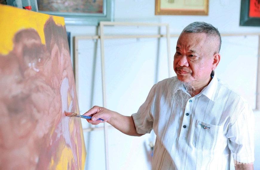| Họa sĩ Lưu Quang Lâm sáng tác tác phẩm hội họa. |