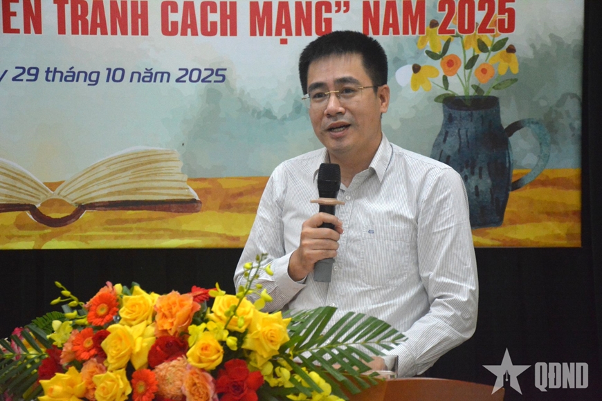 | Đại tá, nhà văn Phạm Văn Trường, Giám đốc, Tổng biên tập Nhà xuất bản Quân đội nhân dân phát biểu. |