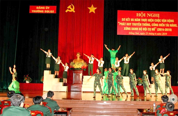 Tiết mục “Bài ca Lục quân 2-Hát mãi khúc quân hành” của Trường SQLQ2 dàn dựng tham gia liên hoan.
