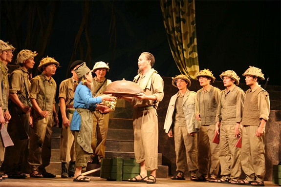 Cảnh trong vở "Đêm trắng" của Nhà hát Chèo Quân đội. Ảnh: ĐỨC LONG